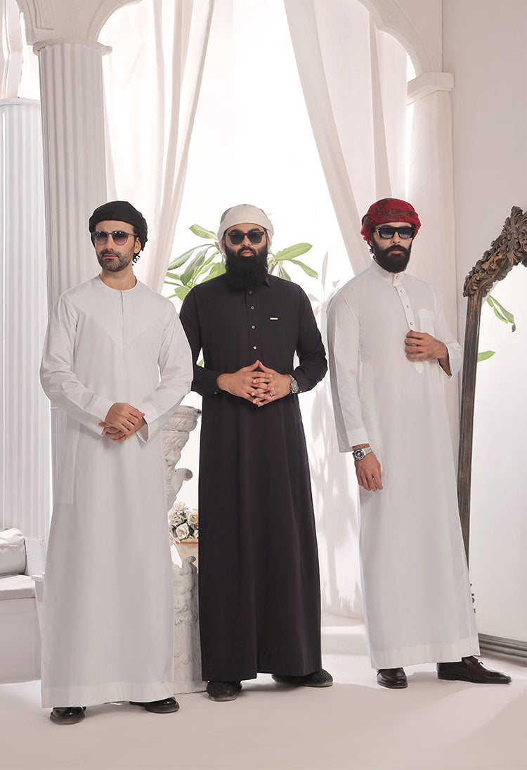 Asad got Black Saudi Collar Thobe (Jubba):